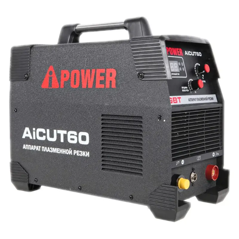 Данный аппарат питается от трехфазной сети 380В и выполнения профессиональных задач по резке изделий из стали и цветного металла толщиной до 15 мм с максимальным током резки 60А и напряжением на дуге 104В. В конструкции аппарата для эффективного преобразования энергии заложена схема классического полного моста на транзисторах IGBT. Аппарат стабильно работает при давлении входящего сжатого воздуха 3,5-4,5 бар. Масса аппарата 11,4 кг, а габариты корпуса оптимальны с учетом внутренней компоновки и требуемой мощностью охлаждения платы и электронных компонентов.