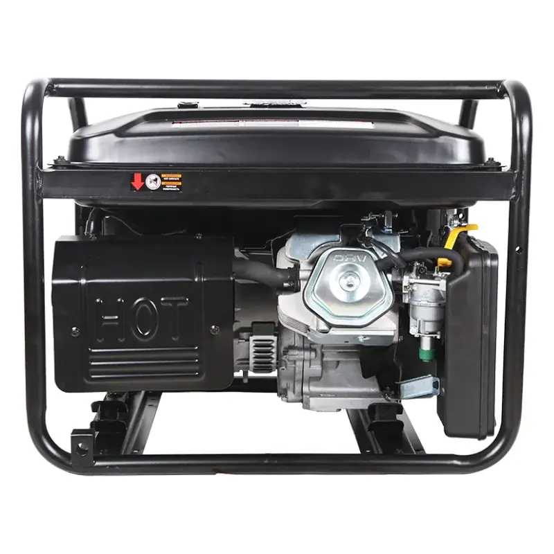 Бензиновый генератор работает без дозаправки 7 часов при полной нагрузке. На цифровом дисплее отображаются текущие данные о напряжении, частоте тока и количестве моточасов. Индикаторная лампа сигнализирует о низком уровне моторного масла. Для подключения потребителей на панели находятся две розетки 230 В: стандартная на 16 А и силовая на 32 А. В случае перегрузки срабатывает защитный автоматический выключатель, который останавливает двигатель, предотвращая выход из строя генератора и подключенных к нему устройств.