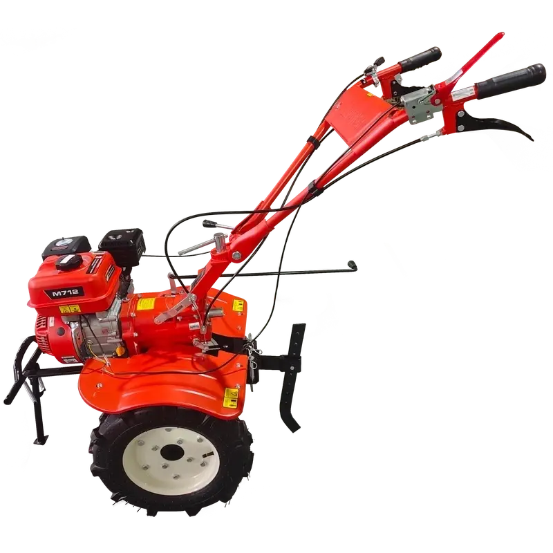 Мотоблок оснащен двумя большими пневматическими колесами с глубокими протекторами, обеспечивающими отличную сцепку с землей. Техника отличается широкой функциональностью и оснащена креплением для навесного оборудования, выполняющего покос травы, возделывание почвы, уборку снега и др.