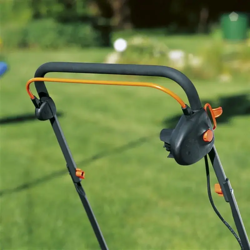 Держатель скарификатора Gardena EVC 1000 оборудован мягким покрытием. Это позволяет комфортно эксплуатировать прибор длительное время без усталости или потери управления. Для перемещения инструмента по участку вы можете использовать транспортировочное положение. В этом режиме лезвия складываются, не повреждая плитку, камень и иные поверхности. Держатель оборудован механизмом, который позволяет полностью сложить устройство. Это гарантирует удобное и компактное хранение, а также транспортировку в багажнике автомобиля.