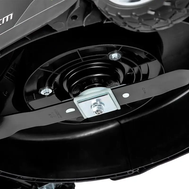 Газонокосилка аккумуляторная Greenworks G40LM41 снабжена удобным центральным переключателем высоты среза травы на все четыре колеса. Основные элементы управления находятся на рукоятке. Для предотвращения случайного включения предусмотрены ключ пуска и кнопка-предохранитель.