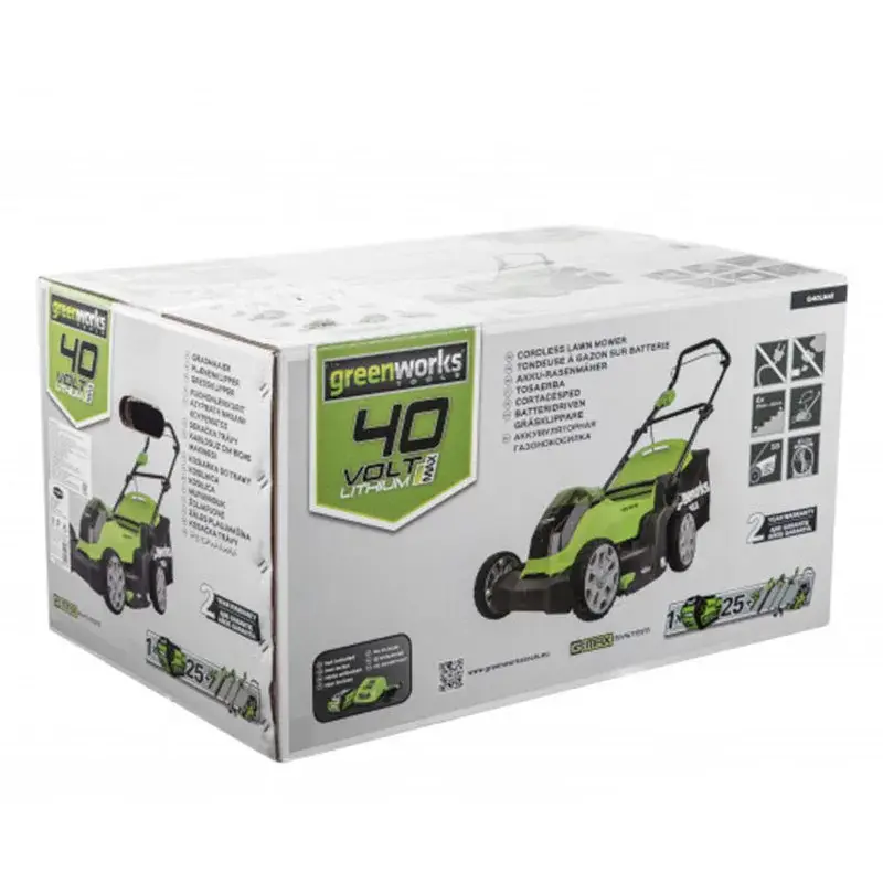 Работает самоходная газонокосилка Greenworks G40LM41K4 от 40 В батареи на 2 А/ч или на 4 А/ч. В блоках питания компании Greenworks установлены платы управления, которые распределяют потребляемую энергию, увеличивая время автономной работы. Используя один аккумулятор, вы можете беспрерывно косить траву в течение 1 часа.