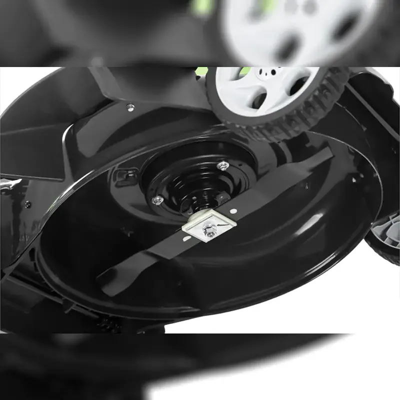 Мульчирующая заглушка закрывающая заднее разгрузочное отверстие, позволяет ножу косилки измельчать срезанную траву. Когда трава слишком высока для мульчирования, Вы можете использовать выгрузку вбок. Удобный 7-ступенчатый рычаг обеспечивает регулировку высоты скашивания от 19 мм до 70 мм. Удобная рукоятка. 7” передние, 10” задние колёса позволят комфортно управлять газонокосилкой. Рама газонокосилки имеет складную конструкцию, для удобства транспортировки и хранения. Эта модель моментально готова к работе нажатием одной кнопки. Благодаря питанию от 40V аккумулятора газонокосилка обеспечивает долгую автономную работу. Данный аккумулятор совместим с другими устройствами из линейки G-MAX 40V. Для безопасной работы газонокосилка оснащена ключом безопасности.