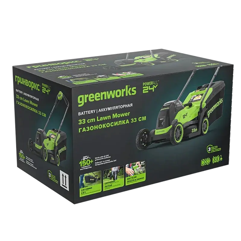 Модель Greenworks GD24LM331 подходит для тех, кто ценит простоту использования, компактность и маневренность, качественный результат без лишних усилий и современные технологии в уходе за газоном.