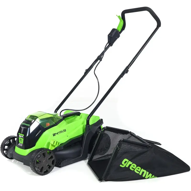 Greenworks GD24LM33 работает от аккумуляторов напряжением 24 В, которые совместимы с другими инструментами экосистемы Greenworks 24V. Это решение позволяет использовать один комплект батарей для разной садовой техники — уход за газоном становится более экологичным и экономичным. Отсутствие вредных выбросов и сниженный уровень шума делают работу с этой газонокосилкой комфортной как для пользователя, так и для окружающих.