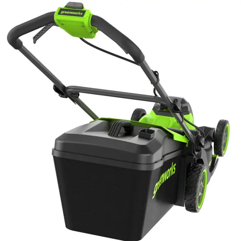 Газонокосилка Greenworks GD40LM411 получила эргономичный выключатель, который удобно расположен и подходит для управления как правой, так и левой рукой. Складная ручка облегчает хранение и транспортировку, особенно в ограниченном пространстве. Колеса увеличенного диаметра с современным дизайном обеспечивают плавный ход и отличную маневренность даже на неровной поверхности. Прочная дека из ударостойкого пластика не боится повреждений и продлевает срок службы косилки.