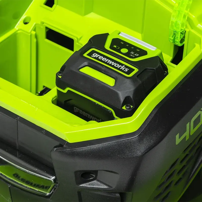 Газонокосилка Greenworks GD40LM48SP имеет прочную стальную деку с порошковым покрытием, которое обеспечивает повышенную износостойкость и защиту от коррозии. Удобная телескопическая рукоятка регулируется под рост оператора.