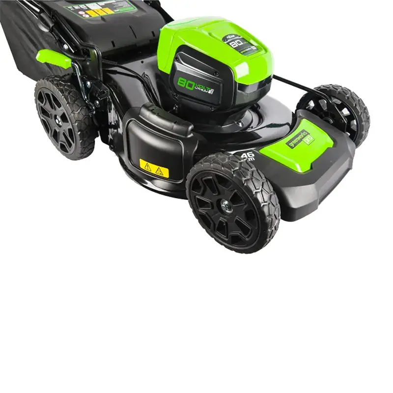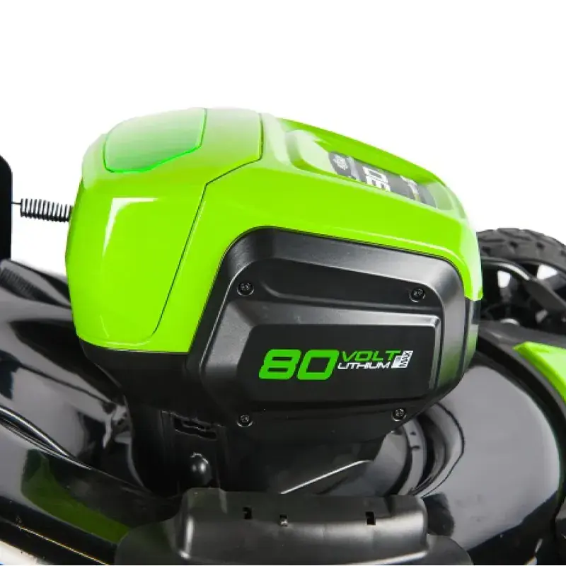 - Аккумуляторная газонокосилка Greenworks работает от аккумуляторной батареи 80V PRO, которую можно использовать другими с устройствами линейки 80V.