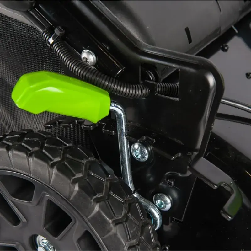 - Для надежности корпус газонокосилки выполнен из специального противоударного пластика. При попадание небольших камней о корпус он не потрескается.