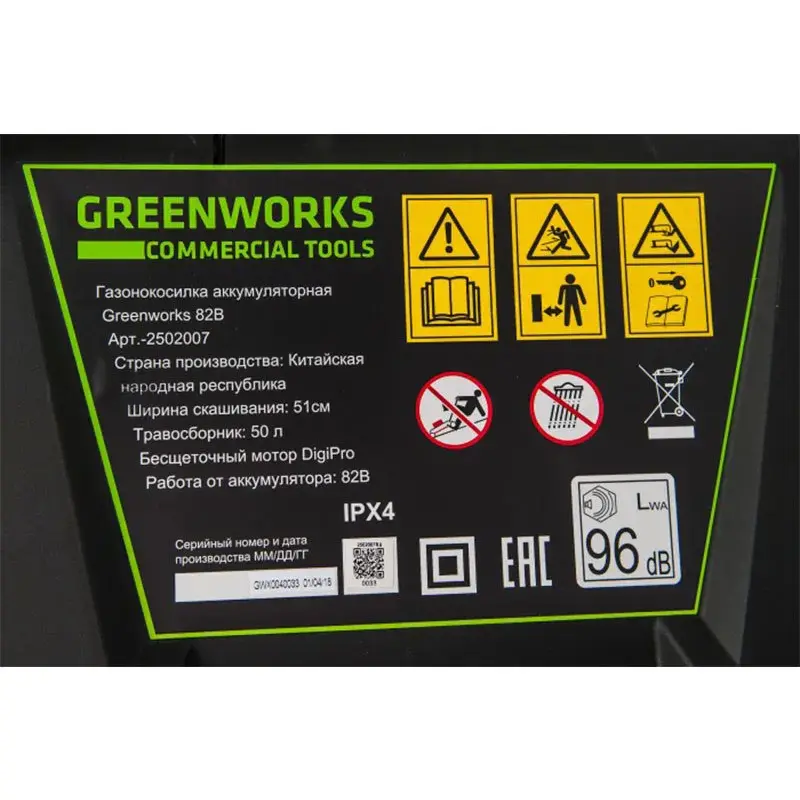 Газонокосилка аккумуляторная Greenworks GD82LM51 82V - мощная профессиональная газонокосилка подойдет как для использования на вашем участке, так и для коммерческого использования.