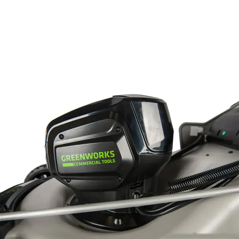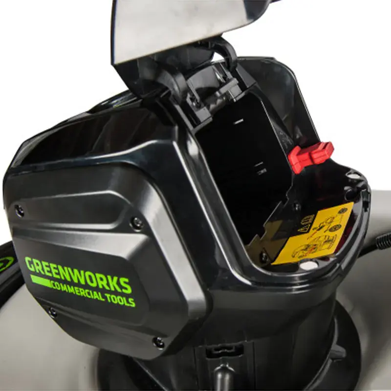 - Газонокосилка работает от аккумуляторной батареи 82V Commercial, которую можно использовать другими с устройствами линейки 82V.