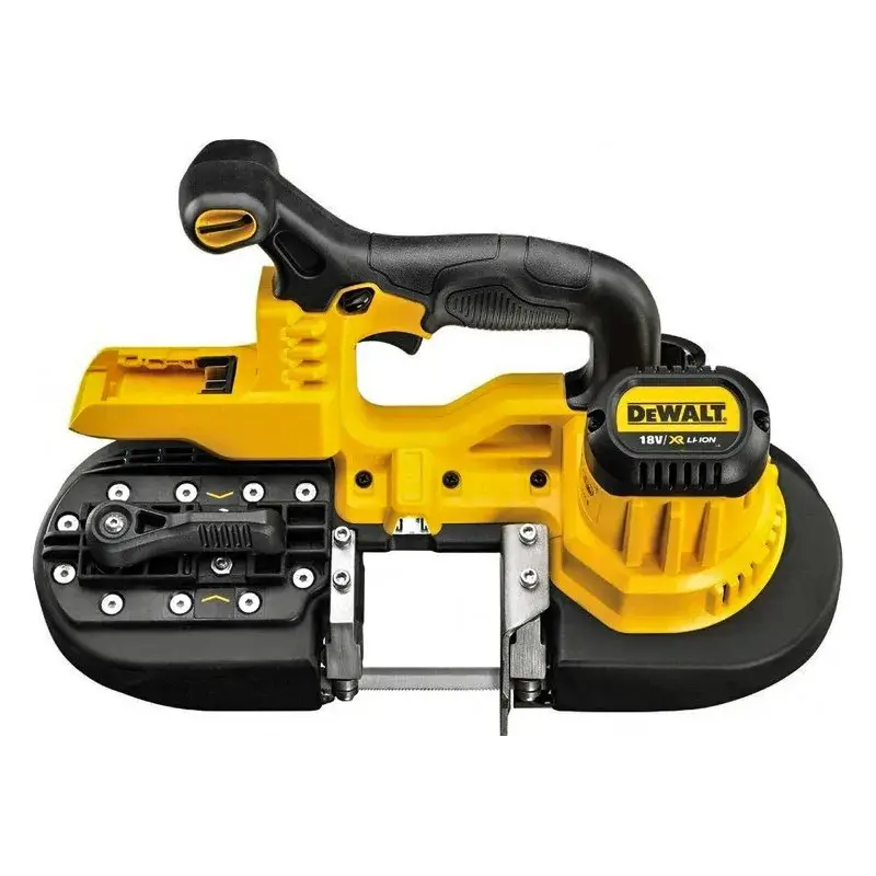 Ленточная пила подойдет для распила сантехнических труб, различных деталей и конструкций из металла или пластика. Глубина реза достигает 63,5 мм. В качестве источника питания для пилы используется 18-вольтовый аккумулятор, совместимый с другими инструментами DeWALT.
