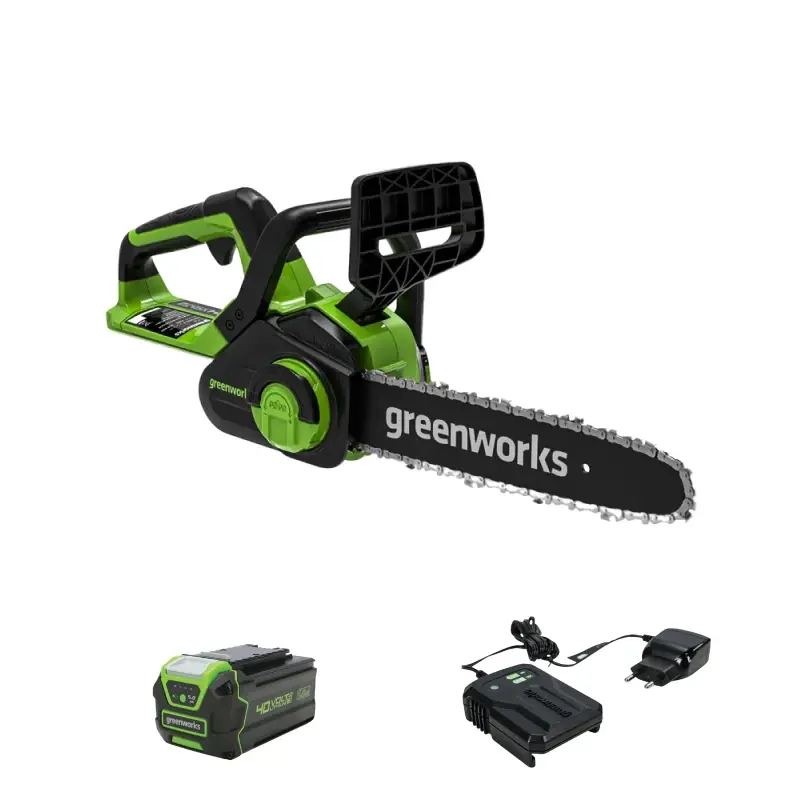 В комплект поставки также входят Аккумулятор Greenworks G40B5 (40 В, 5 Ач) и Зарядное устройство Greenworks G40UCM2M (40 В, 2 А)