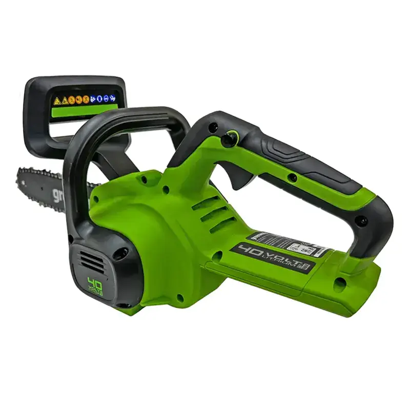 Беспроводная цепная пила Greenworks G40CS30II оснащена инерционным тормозом. Он представляет собой передний щиток, который прожимается во время отскока цепной пилы. При его активации происходит практически мгновенная остановка движения цепи, что защищает вас от получения травмы.