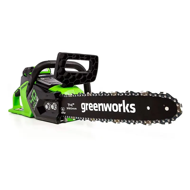 С беспроводной пилой GreenWorks GD40CS15 удобно работать в саду и других удаленных от розетки местах, безопасно использовать ее в закрытых помещениях. Двигатель питается от Li-Ion аккумулятора. Данная модель поставляется без батарей. Это особенно выгодно для тех, у кого уже есть любой аккумуляторный инструмент GreenWorks из серии G-MAX 40V.