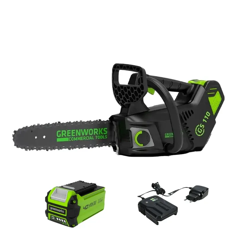 В отличие от сетевых моделей, с одноручной бесщеточной цепной пилой GreenWorks GD40TCS не придется путаться в электрическом проводе. При этом ваше перемещение не будет ограничено длиной кабеля, а отсутствие розетки на участке не помешает работе. В сравнении с бензиновыми пилами, модель более экологична т.к. не выделяет вредных выхлопных газов.