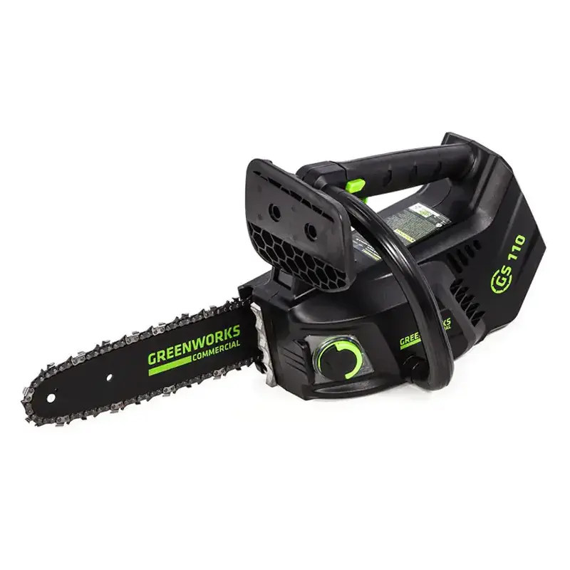 Цепная аккумуляторная пила Greenworks GD40TCS поставляется с шиной длиной 25 см, что позволяет резать бревна диаметром до 20 см. Инструмент поставляется без зарядного устройства и батареи, а потому вам не придется переплачивать если они у вас уже есть.