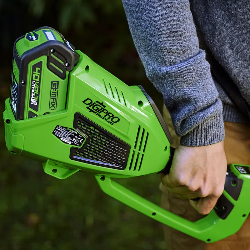 Инструмент отличается простотой и удобством в использовании. Чтобы начать работу, достаточно установить батарею и нажать кнопку. В комплектацию триммера Greenworks GD40BC входит мощный аккумулятор большой емкости, который обеспечивает продолжительную работу на одном заряде.