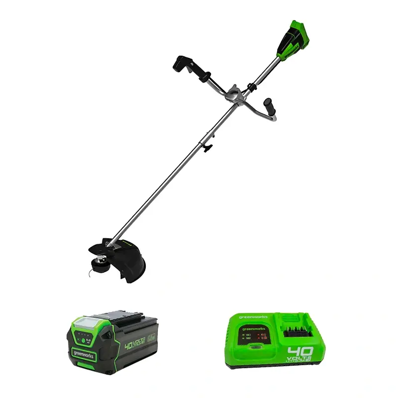 В комплект входит аккумулятор Greenworks G40B5 (40 В, 5 Ач) и быстрое зарядное устройство Greenworks G40UC5 (40 В, 5 А)