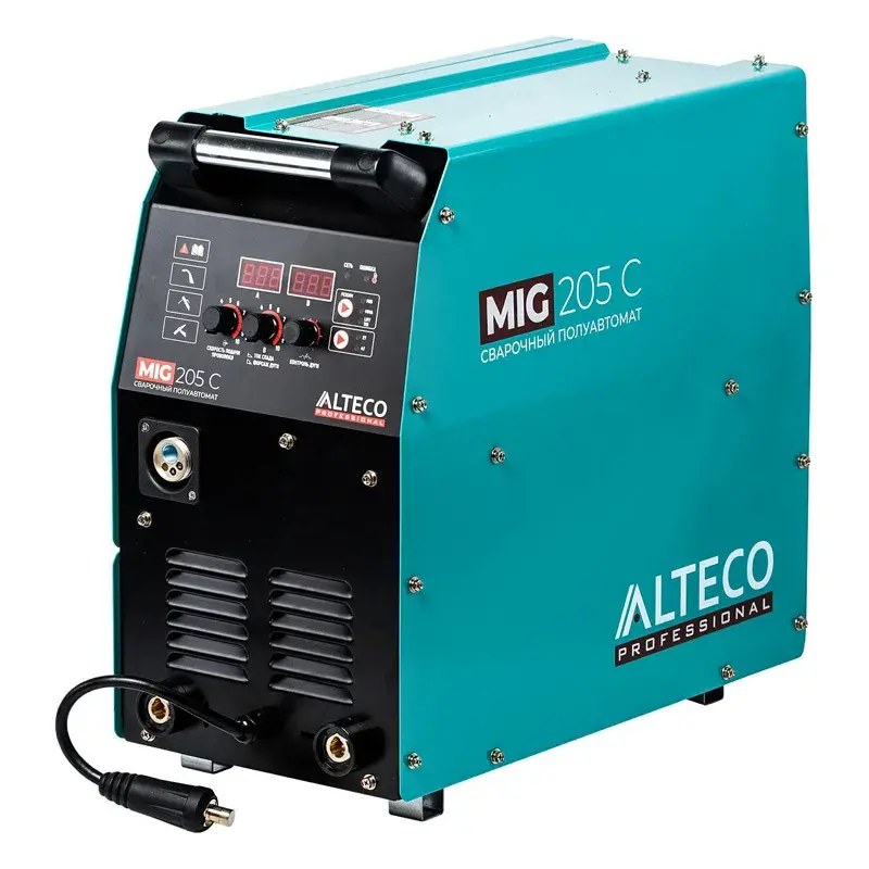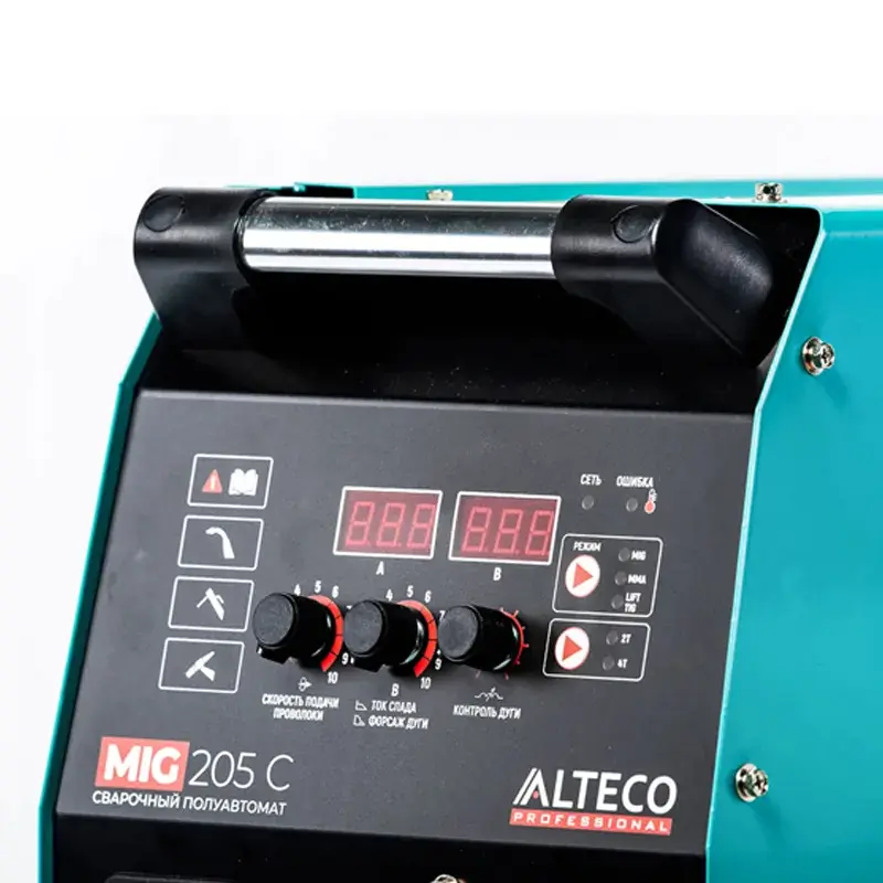 Сварочный MIG-MAG аппарат ALTECO MIG 205 C - это универсальное оборудование профессионального уровня, которое активно используется на строительных площадках, в производстве различных металлических изделий и в других местах. С помощью данного агрегата можно осуществить высококачественную сварку деталей из стали и алюминия, а также из их сплавов. Оборудование обладает высокопрочным корпусом, который надежно защищает внутренние механизмы инвертора от ударных воздействий и попадания внутрь влаги.