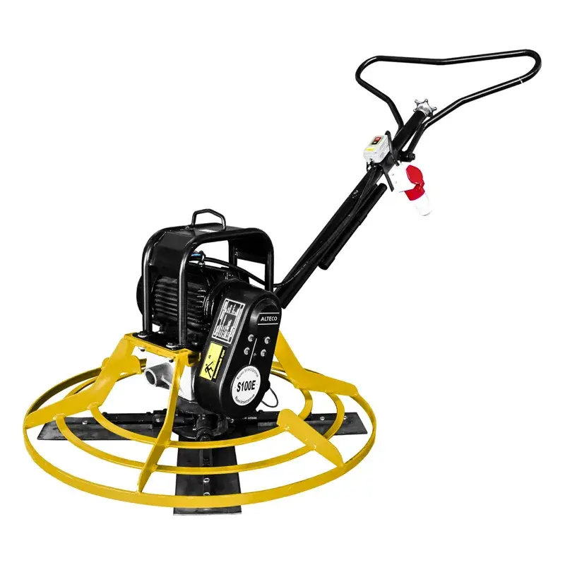 Машина бетоноотделочная ALTECO SE 100 предназначена для работы на больших площадях и позволяет производить затирку цементных оснований и заглаживание бетонных поверхностей. В зависимости от вида работ можно работать заглаживающим диском или четырьмя лопастями. При помощи троса, проходящего внутри ручки, можно регулировать наклон лопастей, что позволяет добиться высокого качества поверхности.
