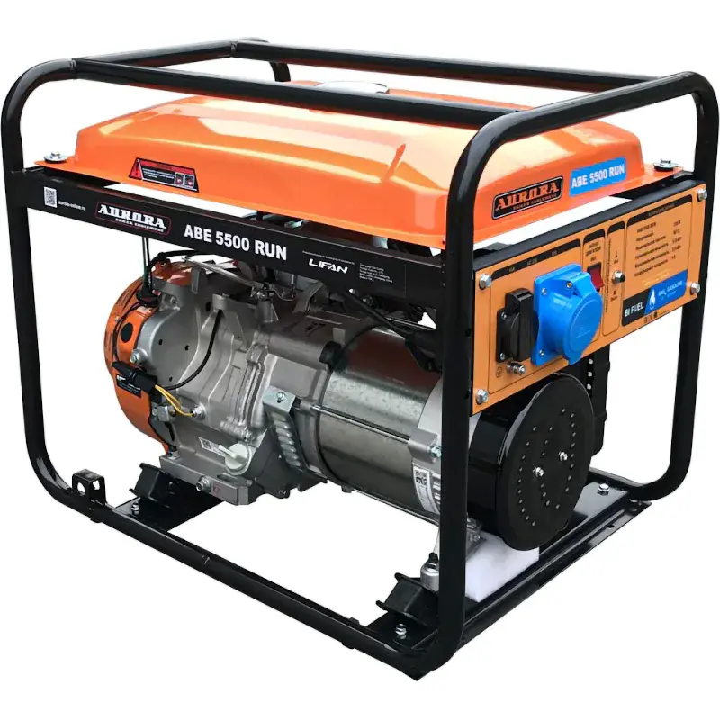 Газо-бензиновый генератор Aurora ABE 5500 RUN используется в качестве резервного источника электроэнергии для строительных и дорожных бригад, дач, кемпингов, выездных мероприятий. Устройство оснащено 4-тактным двигателем с легким ручным стартером, имеет две розетки для подключения приборов и техники общей мощностью до 5 кВт.