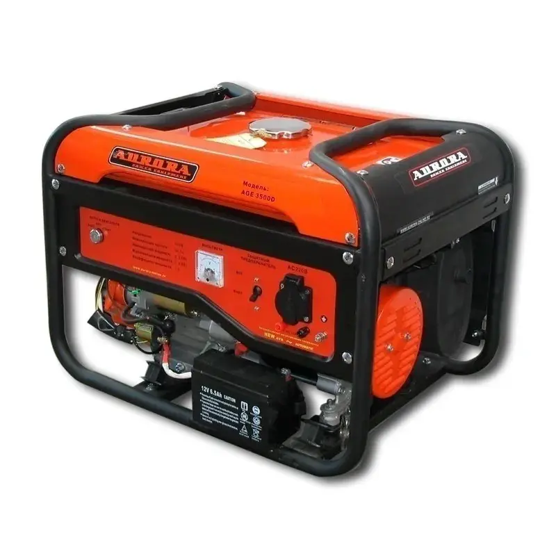 Бензиновый генератор Aurora AGE 3500 D с максимальной мощностью двигателя 2,8 кВт оснащен системой электрозапуска. Вы можете завести мотор как с помощью ручного стартера, так и одним поворотом ключа зажигания.