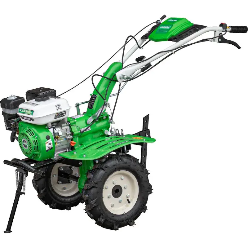 Бензиновый мотоблок Aurora COUNTRY 1005 предназначен для обработки почвы под посев и посадку овощных культур в подсобном хозяйстве. На вал отбора мощности и универсальную сцепку можно устанавливать активное и пассивное навесное оборудование. В комплект поставки входят комплекты острых саблевидных фрез, которые обеспечивают вспашку земли на глубину до 30 см. Ширину обработки можно изменять от 800 до 1050 мм. Мотоблок оснащен четырехтактным двигателем с воздушным охлаждением мощностью 9 л.с.