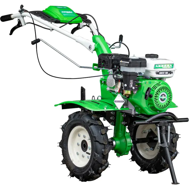 Вы без проблем заведете двигатель при помощи ручного стартера благодаря системе облегченного запуска. Глубину вспашки можно регулировать путем перестановки сошника. Для удобства переоборудования мотоблока Aurora COUNTRY 1005, например, установки на него плуга или грунтозацепов, в конструкции предусмотрена подножка. Широкие стальные крылья защитят вас от вылетающих из-под фрезы камней и комьев земли.