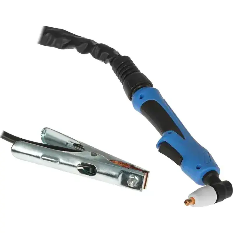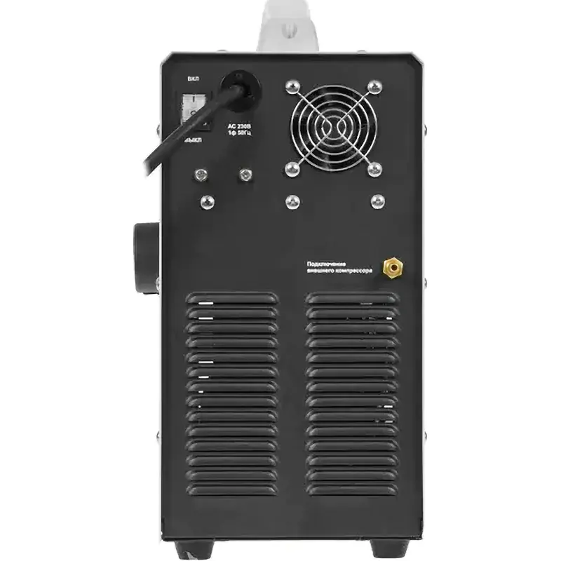 С помощью поворотного регулятора на передней панели плазмореза можно установить необходимую силу тока в зависимости от толщины материала. Цифровое табло амперметра отображает выбранное значение. Лампочки индикации предупреждают о подключении к сети, перегреве или неисправности. Переключатель между внутренним и внешним компрессором позволяет выбрать оптимальный режим работы. Для выполнения резки толстостенного металла целесообразно подключить отдельное мощное устройство подачи сжатого воздуха.