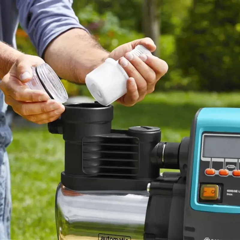 С напорным насосом Gardena 6000/6E LCD Comfort, Вы всегда сможете сэкономить ваши деньги. Вы можете использовать дождевую воду там, где Вам необходимо: дома в уборной комнате или для стиральной машины, либо в саду для полива. Насос можно установить в качестве постоянного узла Вашей системы водоснабжения.