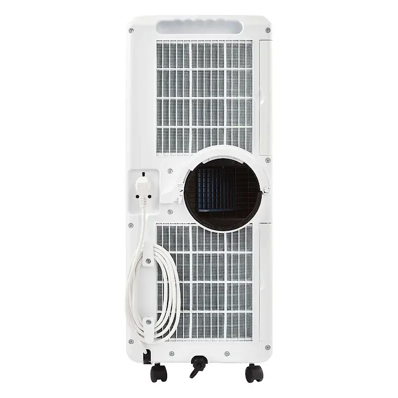 Благодаря функции авторестарт устройство автоматически возобновит работу с заданными настройками в случае кратковременного отключения электричества. Для удобства установки в комплекте предусмотрен 1,5-метровый воздуховод для выведения горячего воздуха и влаги на улицу. Перемещать кондиционер по комнате легко благодаря колесам.