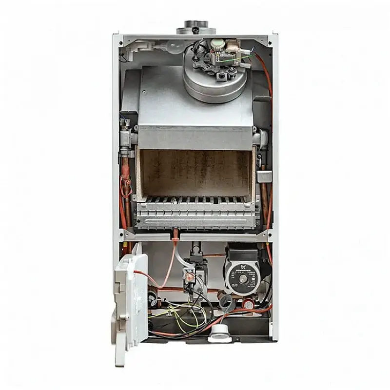 Камера сгорания закрытого типа с принудительным отводом отработанных газов позволяет устанавливать оборудование в жилых помещениях. При отсутствии воды или недостаточном давлении в системе котел автоматически отключается. При снижении температуры поступающей воды до 5_С автоматически включается горелка для подогрева ее до 30_С в системе подачи. Датчики контроля пламени и температуры обеспечивают безопасность эксплуатации котла Baxi ECO FOUR 24 F.