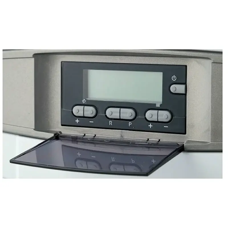 Газовый котел с высокой полезной тепловой мощностью 31 кВт подходит для отопления домов площадью до 310 м2, работает в четырех режимах: «Лето» (только ГВС), «Зима» (отопление и ГВС), «Только отопление», «Выключено» (активна только функция «защита от замерзания»). Температуру нагрева воды удобно регулировать кнопками «+» и «-». В системе отопления предусмотрены два диапазона: от 30 до 85°С для батарей и от 30 до 45°С для теплых полов. Параметры и режимы работы, текущее состояние котла и коды неисправностей легко отслеживать с помощью дисплея.