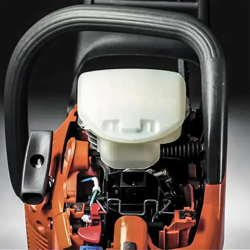 Мотопила предназначена для ежедневного многочасового применения при валке леса или для строительных задач. Металлический картер двигателя из сплава магния и алюминия не перегревается во время больших нагрузок. Он рассчитан на работу при высоких оборотах и обеспечивает длительных срок службы инструмента.