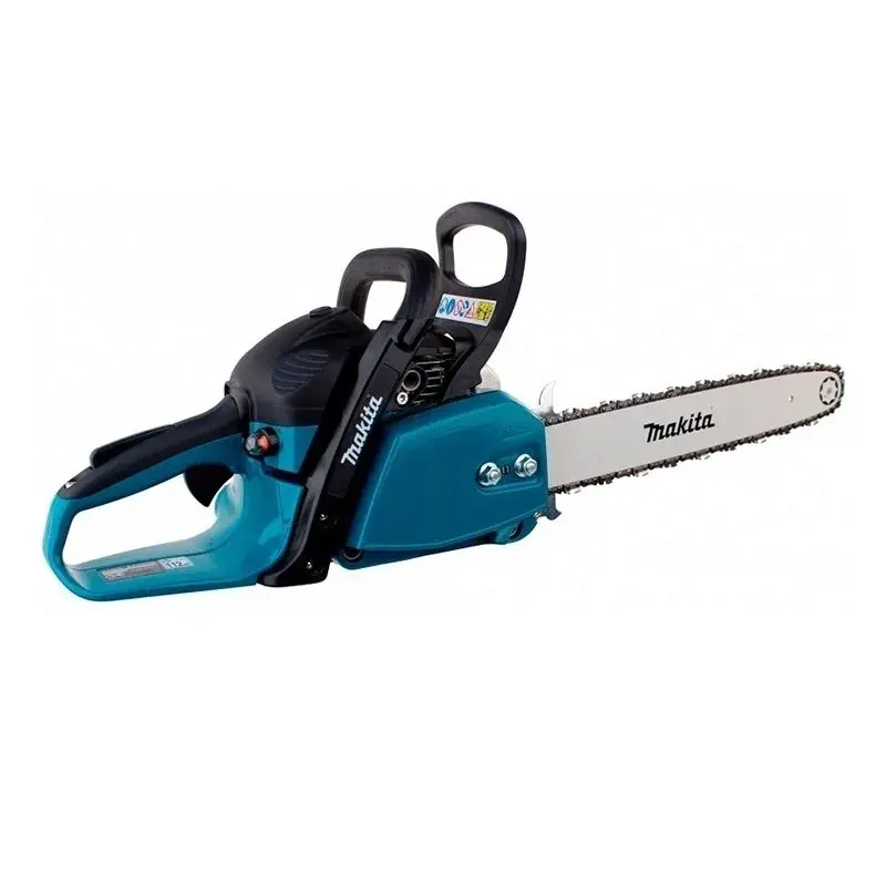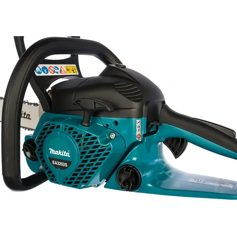 MAKITA EA3202S40B — бензопила для работ на дачном участке и в саду. Поможет заготовить дрова, спилить небольшие деревья, обрезать сучья и сформировать кроны. Модель отличается надежностью, безопасностью работы и долгим сроком службы. Смазка цепи автоматизирована. Есть праймер и тормоз цепи SafetyMatic. Длина шины — 16". Мощность — 1,8 л.с.