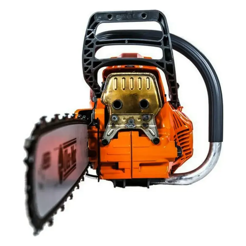 - Система виброизоляции с 2 пружинными и 4 резиновыми амортизаторами. Максимально снижают уровень вибрации на рукоятках пилы, что делает работу оператора более комфортной.