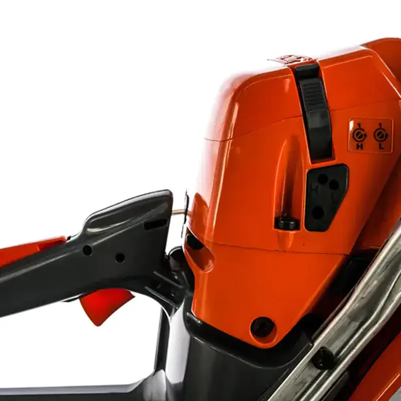 - Один рычаг управления. Сочетает в себе функции выключателя зажигания и рычага воздушной заслонки, что значительно упрощает использование пилы.