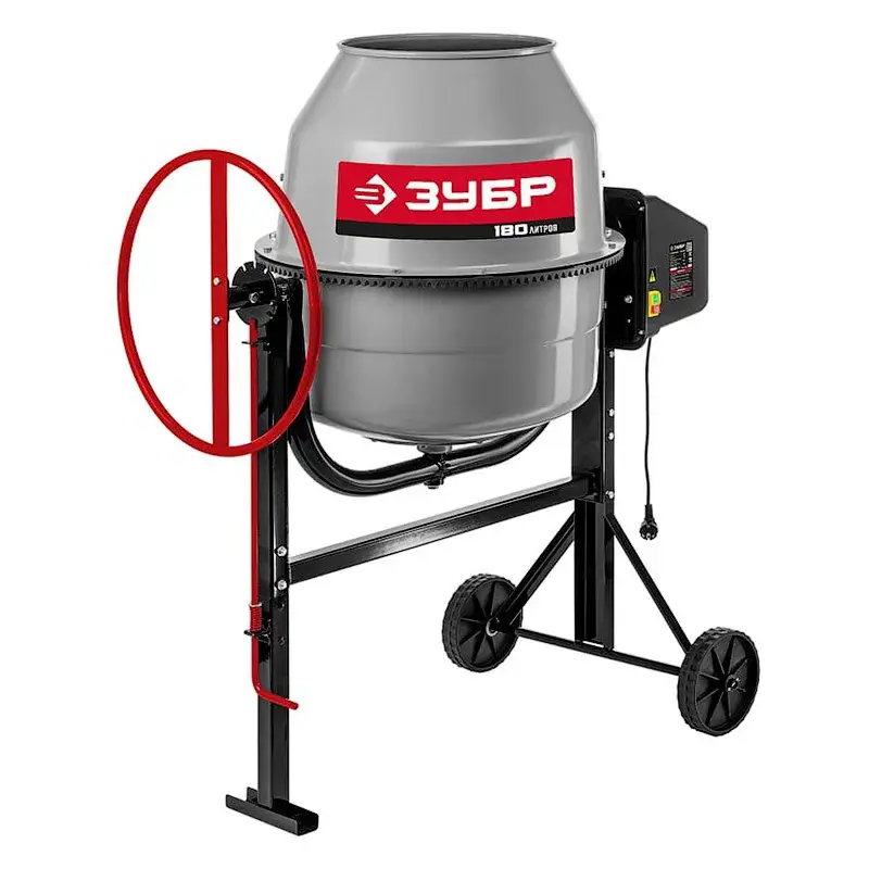 Бетономешалка ЗУБР БМЧ-180 оборудована термической защитой, которая автоматически отключает двигатель в случае перегрузки. Электромагнитный выключатель предотвращает случайное включение при восстановлении напряжения. Для запуска устройства нужно всегда нажимать кнопку выключателя. Порошковое покрытие на основе атмосферостойкой полиэфирной краски защищает корпус от коррозии. Зубчатый венец изготовлен из прочного и долговечного чугуна. Лопасти прикреплены к корпусу болтами, что упрощает их замену и предотвращает обламывание от постоянных ударных нагрузок. Асинхронный двигатель не требует обслуживания на протяжении всего срока службы.