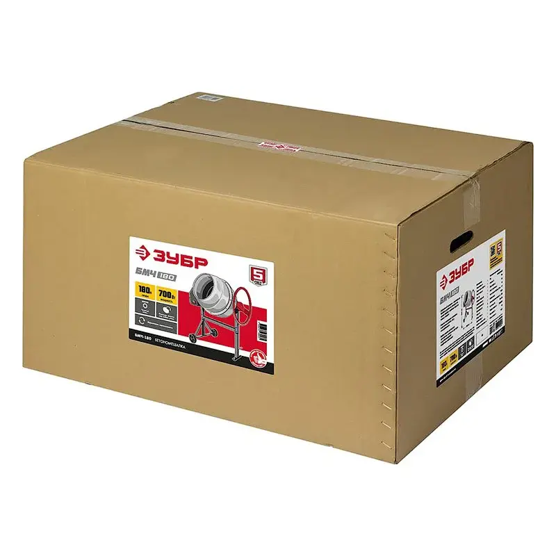 Бетономешалка ЗУБР БМЧ-180 служит для приготовления бетонных смесей и строительных растворов путем перемешивания. Устройство предназначено для непродолжительных работ и нагрузок средней интенсивности. Конструкция с двигателем мощностью 700 Вт и скоростью вращения емкости 27 об/мин позволяет получить качественные однородные смеси. Работает от сети с напряжением 220 В. Условия эксплуатации: температура от +1 до +40°С, относительная влажность воздуха не более 80% при отсутствии атмосферных осадков и чрезмерной запыленности воздуха.