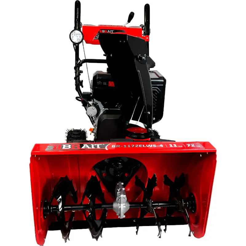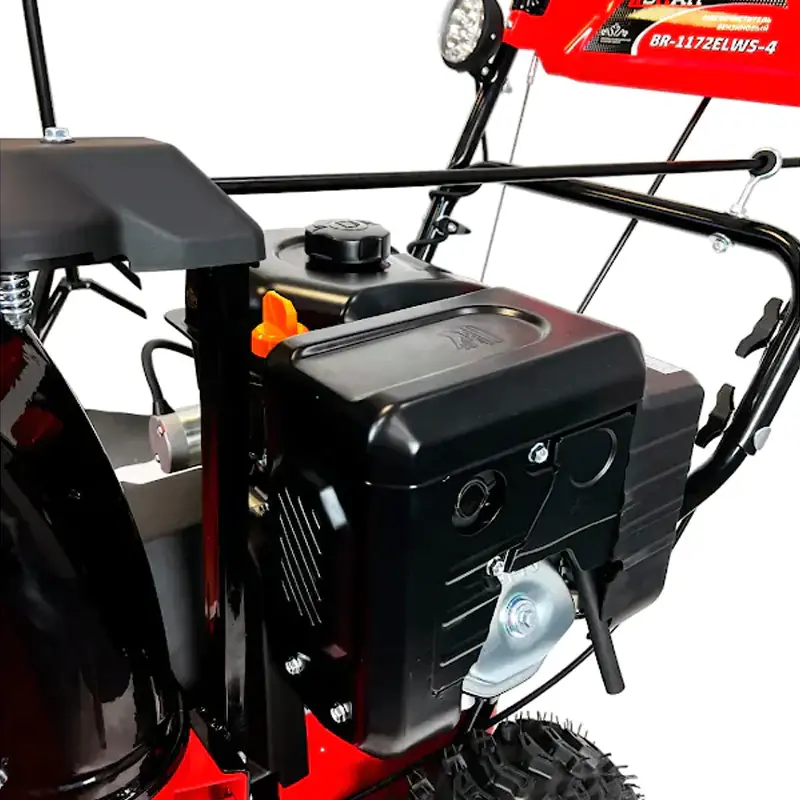 Снегоуборщик BRAIT BR-1172ELWS-4 имеет два стартера: ручной и электрический. Праймером для подкачки топлива облегчает запуск холодного двигателя. Если поблизости есть доступ к электричеству, достаточно воткнуть вилку в розетку и нажать на кнопку электростартера, чтобы завести мотор.