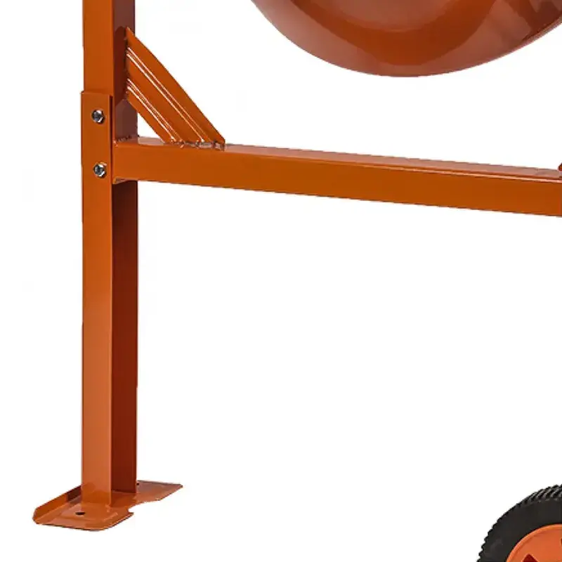 Скорость вращения барабана 29,5 об/мин позволяет качественно перемешивать компоненты бетонных смесей, строительных и отделочных растворов. Бетономешалка имеет удобный механизм регулировки наклона барабана при помощи ножной педали и поворотного колеса. Емкость можно установить в удобном положении для хранения, перемешивания, загрузки или выгрузки. Простое управление осуществляется при помощи двух кнопок: зеленой, используемой для включения, и красной — для выключения. Прочные колеса облегчают перемещение бетономешалки по участку. Уровень шума во время работы не превышает 93 дБ.