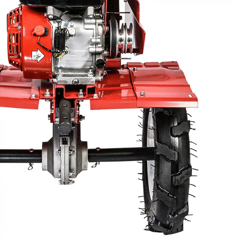 - На мотоблоке BR 2-7.8 есть функция разобщения левого колеса. Данная функция особенно полезна, когда во время вспашки или культивации Вы доходите до конца поля и Вам необходимо развернуть мотоблок на 180 градусов, чтобы продолжить работу. Нажав рычаг разобщения колес, Вы легко совершите поворот даже на небольшой площади.
