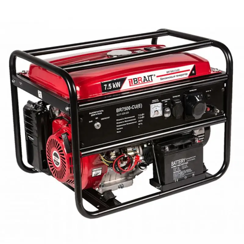Генератор бензиновый BRAIT BR7500-CU(Е) электрозапуск. Конструкция корпуса агрегата имеет надежную раму из прочных металлических труб. Это обеспечивает надежную защиту генератора. Компактные размеры и небольшой вес облегчают транспортировку и перемещение бензинового генератора, делают его положение устойчивым на любой местности.