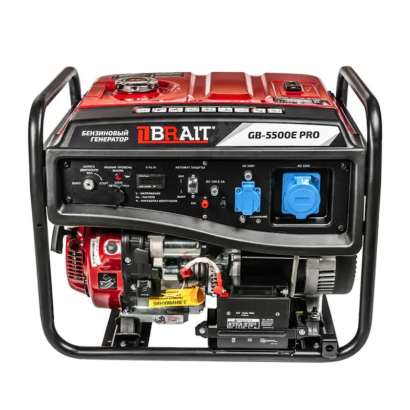 Генератор бензиновый BRAIT GB-5500E PRO оснащен профессиональным одноцилиндровым, 4-тактным, бензиновым двигателем мощностью 13л.с., с функцией "легкий старт" и датчиком низкого уровня масла. Минимальный моторесурс 800 м/часов. Запатентованный высококачественный синхронный альтернатор с защитой от перегрева, изготовленный из горячекатаных кремнестальных листов и обмотками с высоким КПД до 80%.