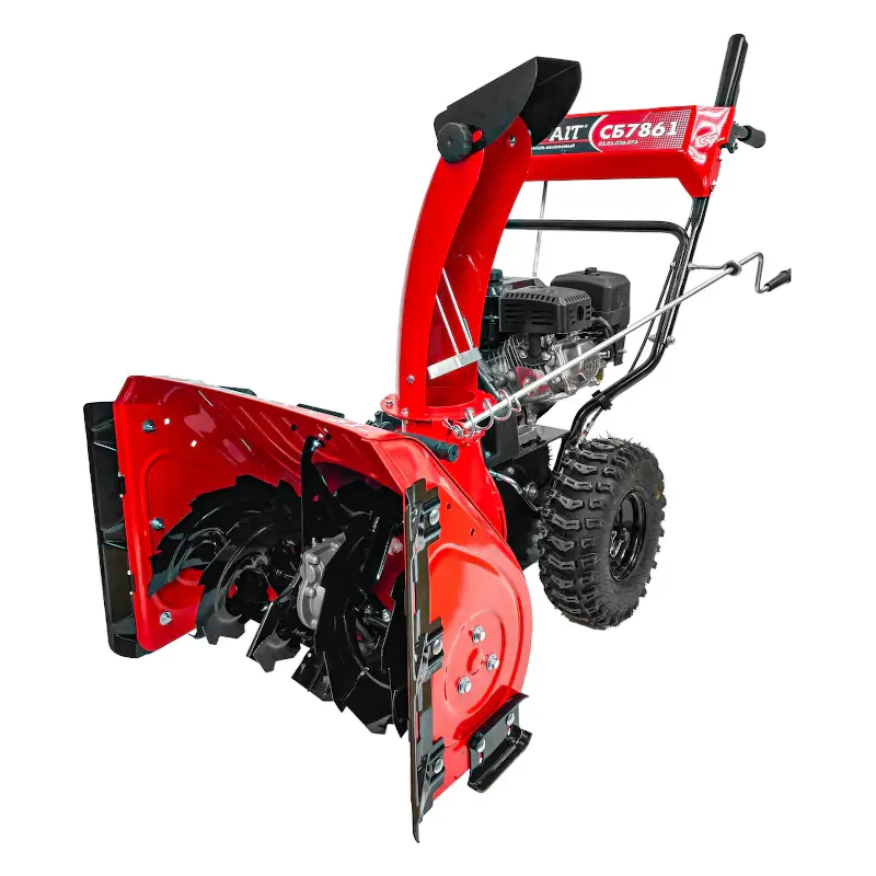 Бензиновый снегоуборщик BRAIT СБ-7861 с четырехтактным двигателем мощностью 7 л.с. эффективно справляется с расчисткой обширных участков от снега и наледи благодаря усиленному металлическому ковшу с шириной захвата 61 см. Стальной шнек с острыми зубьями способен перемалывать даже плотную слежавшуюся снежную массу. Максимальная дальность выброса составляет 12 м.