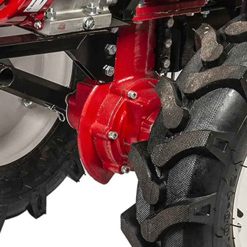 - Большие пневматические колёса 5х12 обеспечивают отличную проходимость мотоблока по местности.