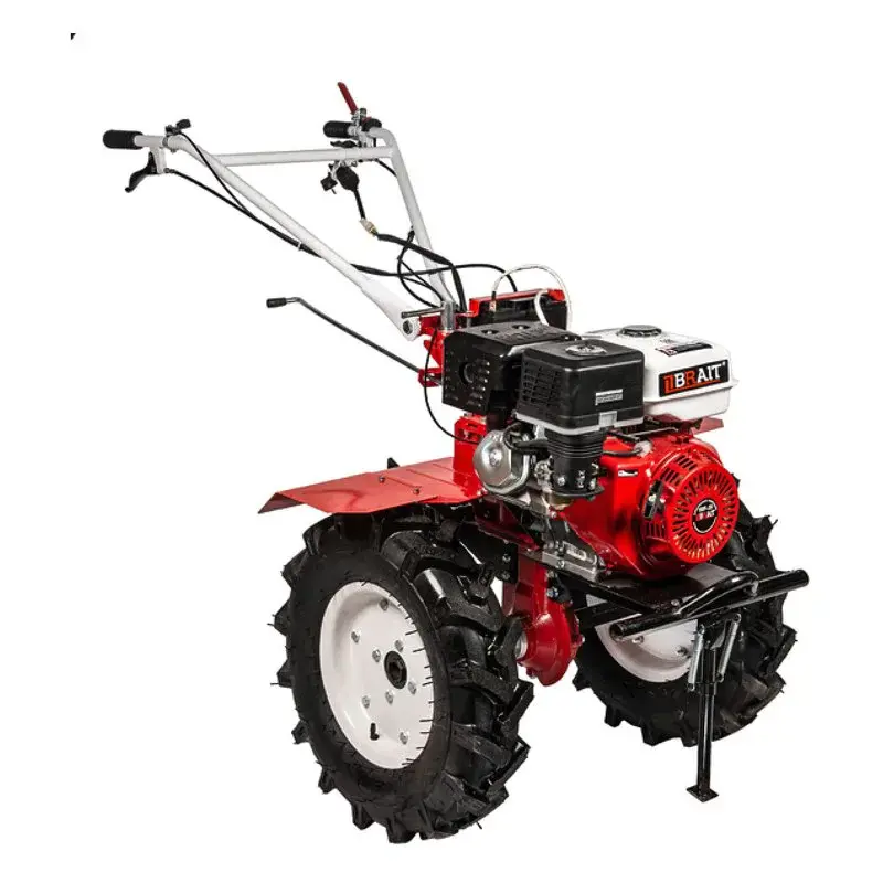 Бензиновый мотоблок BRAIT BR-135GBE с электрозапуском разработан специально для обработки участков большой площади. В комплекте к этому агрегату идут колеса, фрезы, аккумулятор, сцепка (является стандартной, может быть использована с любым плугом, окучником, тележкой и иным дополнительным оборудованием), технический паспорт, инструкция, гарантийный талон. Чтобы собрать мотоблок после покупки, не придется тратить много времени и сил. Для перевозки такой модели не потребуется грузовая машина. В собранном виде изделие легко помещается в багажник легкового автомобиля.