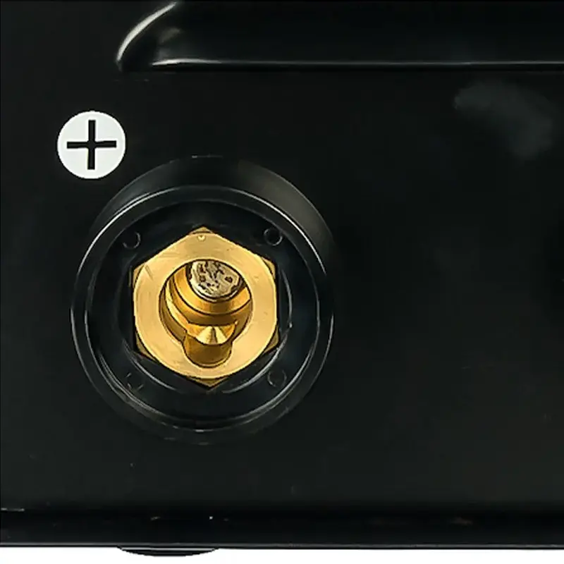 - Подключение кабелей. Специальные силовые разъемы сварочного инвертора BRIMA ARC-200 служит для быстрого подключения сварочного кабеля.
