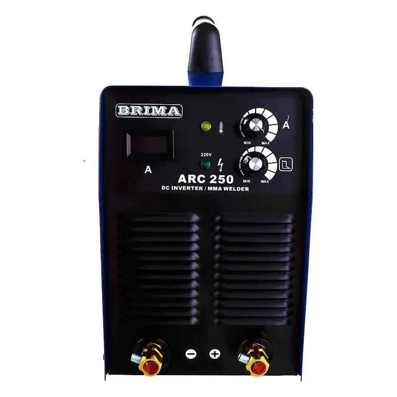 Сварочный инвертор BRIMA ARC-250 работает от однофазной электросети 230 В, используется для электродуговой сварки ММА покрытым электродом. Диапазон сварочного тока 20-230 А позволяет варить металл разной толщины, выполнять профессиональные задачи, получать качественное неразъемное соединение.